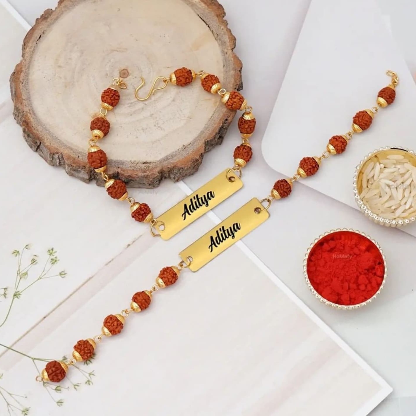 Customized Rudraksha Bracelet Rakhi for Brothers